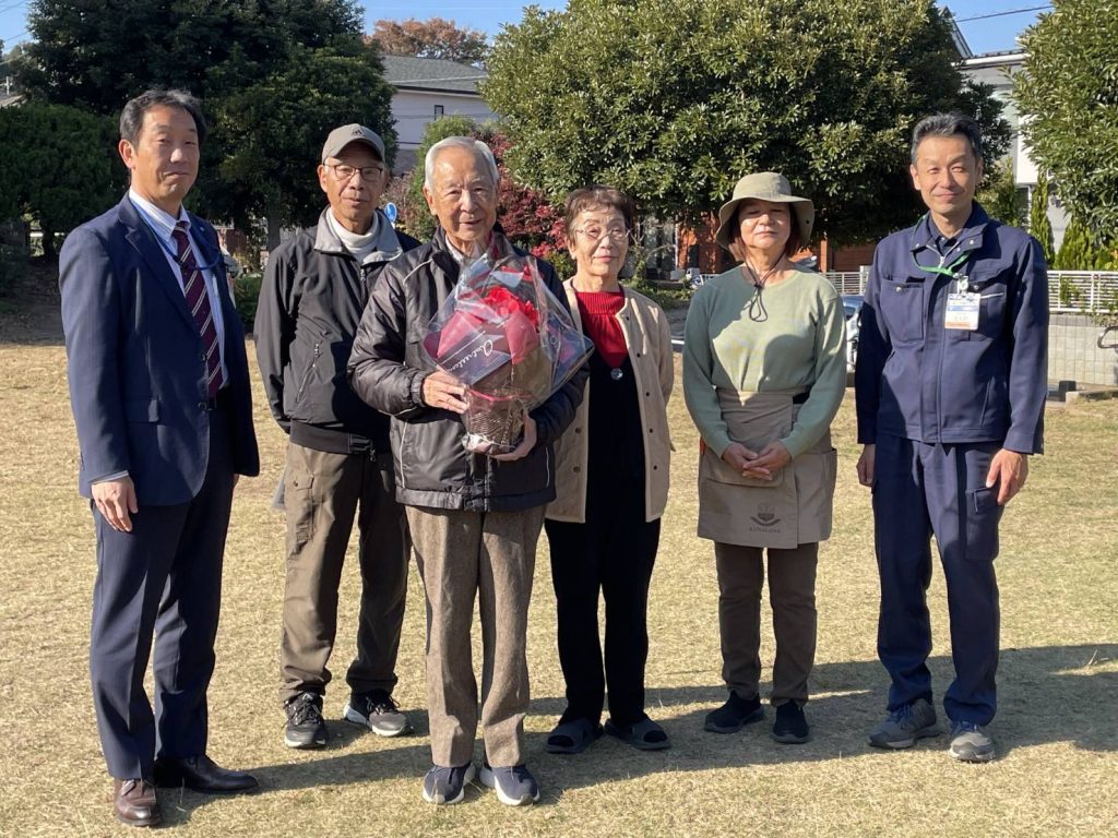 今月11日の市の表彰を受けて、緑区長が武蔵中山台をご訪問下さり、栂野会長に記念品を贈られました。