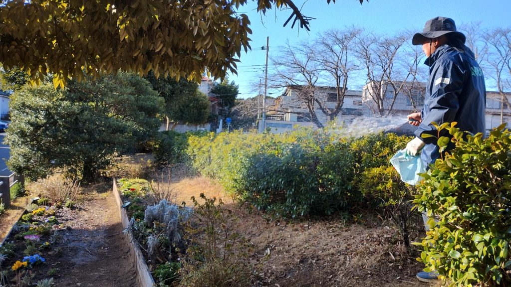 アメジストセージなどの枯れ枝切り、枯葉の除去を行いました。