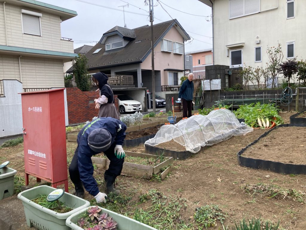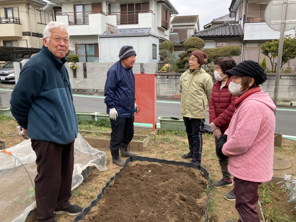 冷え込んだ朝でしたが、7名の方がふれあい花壇に集まって頂いて新年最初の作業に取り組みました。