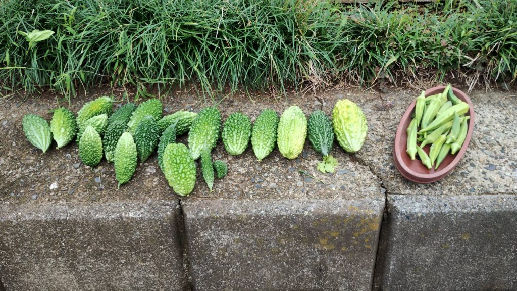 本日の収穫はゴーヤとオクラでした。