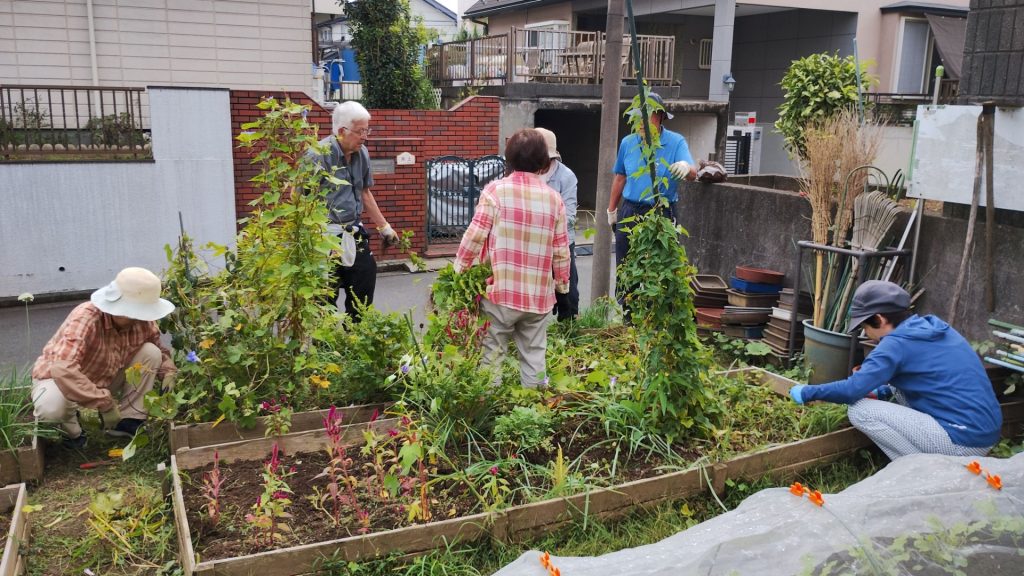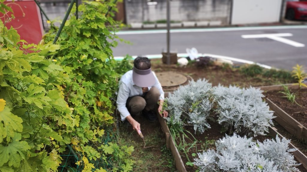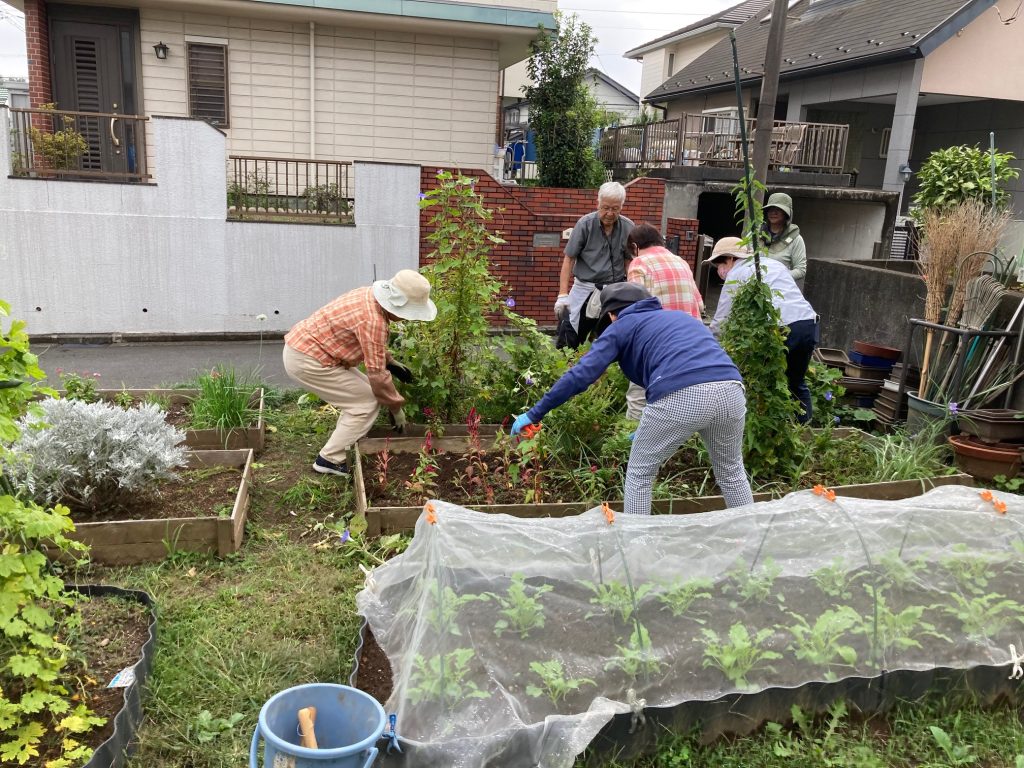 今日は自治会のお掃除の後、ふれあい花壇での作業がありました。