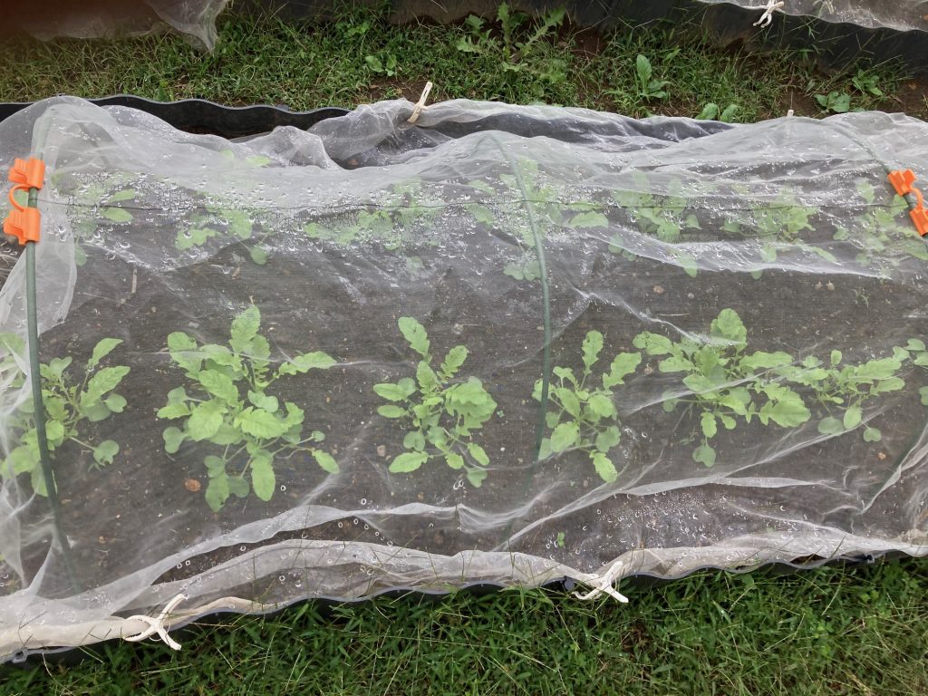 2週間前に種まきしたダイコンは順調に発芽していました。