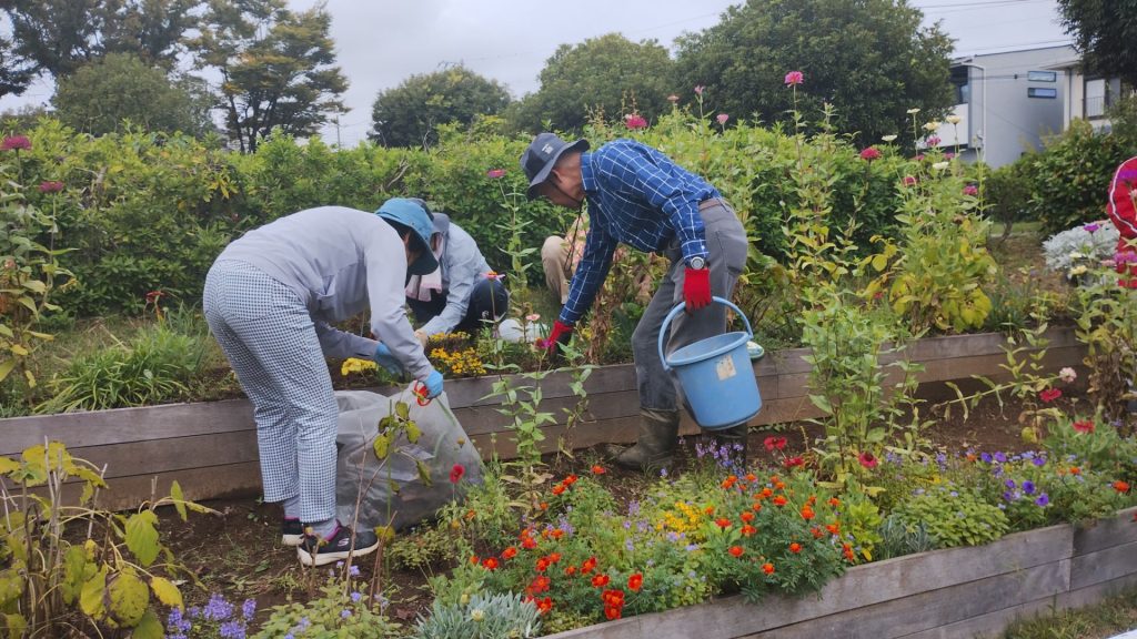 作業内容は主に花壇の花殻摘みと除草でした。